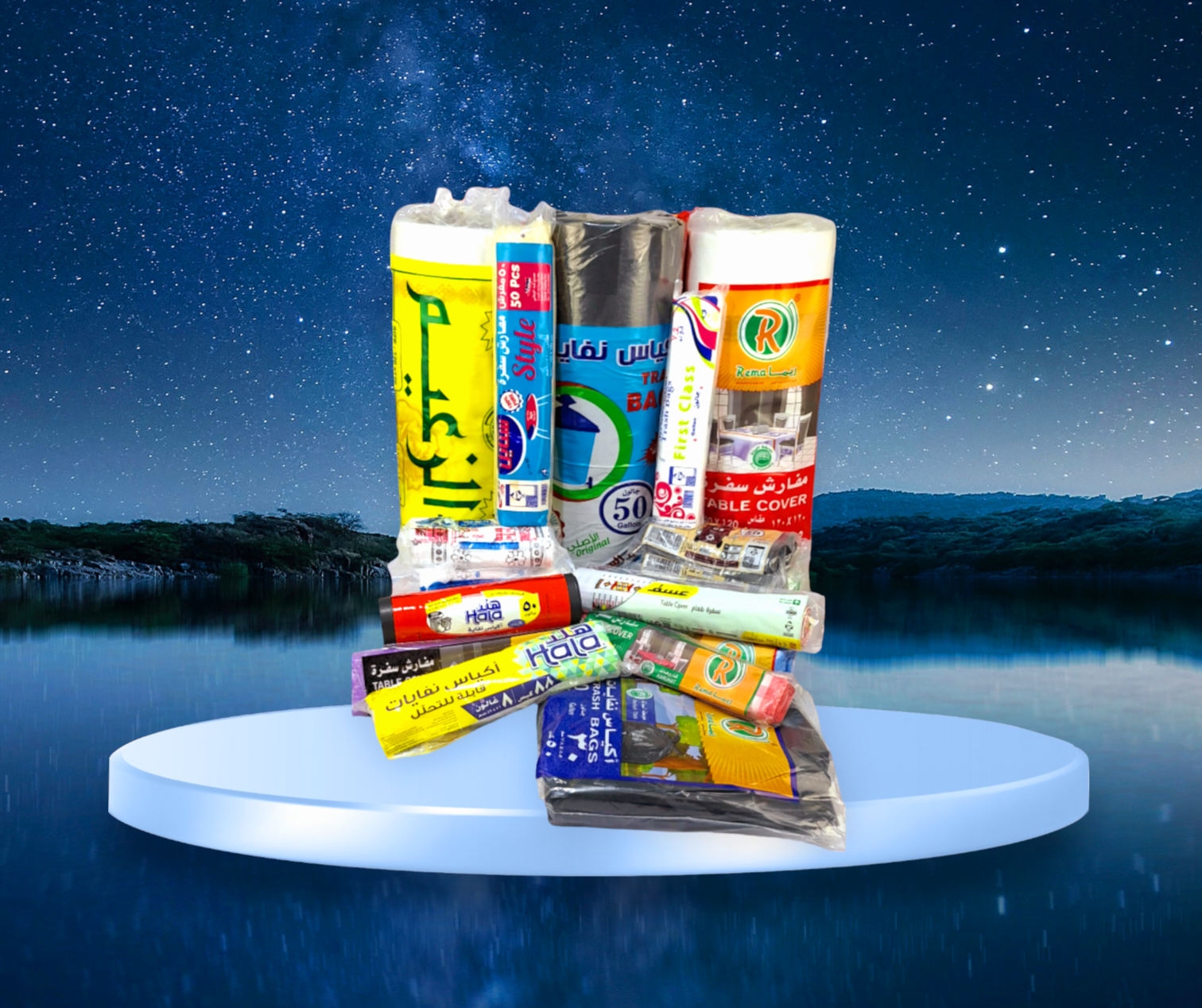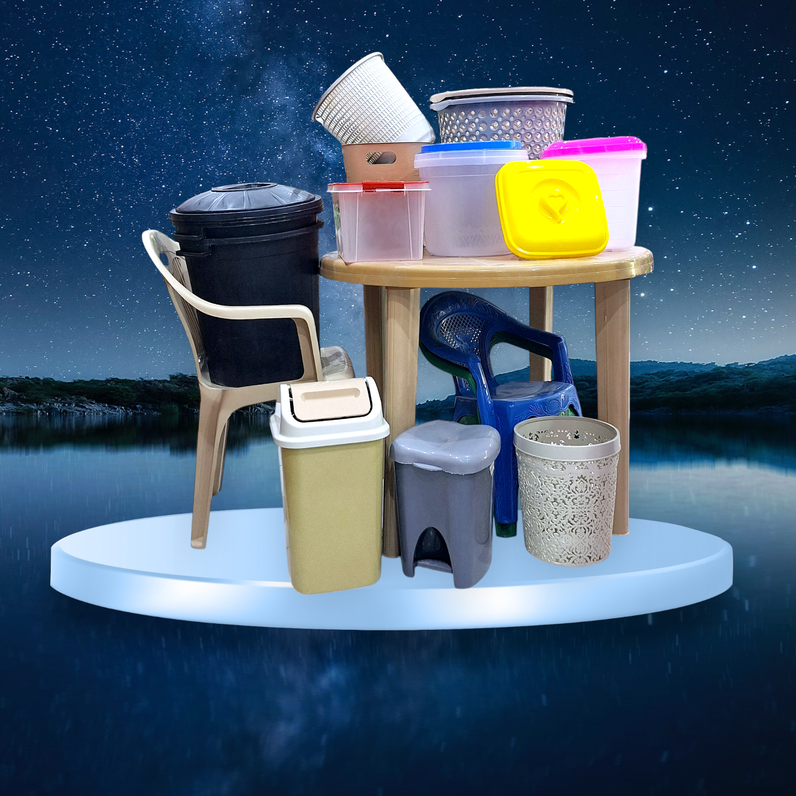 تشمل كل أنواع البلاستيك للتخزين وحفظ الطعام وايضا درام الزبالة والكراسي