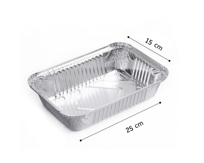 صحن قصدير بروستد أساس مستطيل بالغطاء رقم 1004 شدة 100 حبة مقاس 15 * 25 * 6 سم