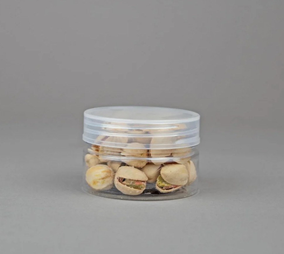 برطمان إسطواني بلاستيك شفاف عسق 50 مل شدة 12 حبة