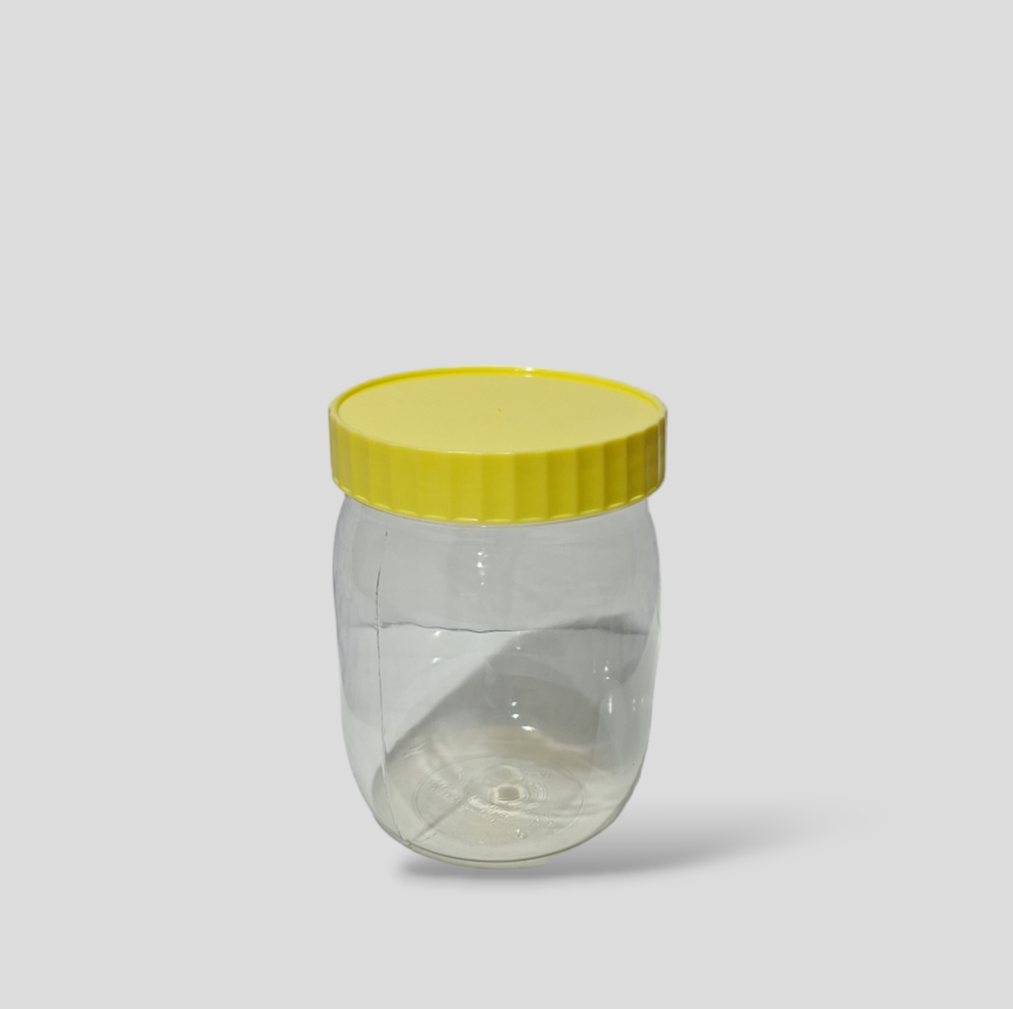 برطمان بيضاوي بلاستيك شفاف عسق بالغطاء الأصفر 500 * 82 مل شدة 12 حبة