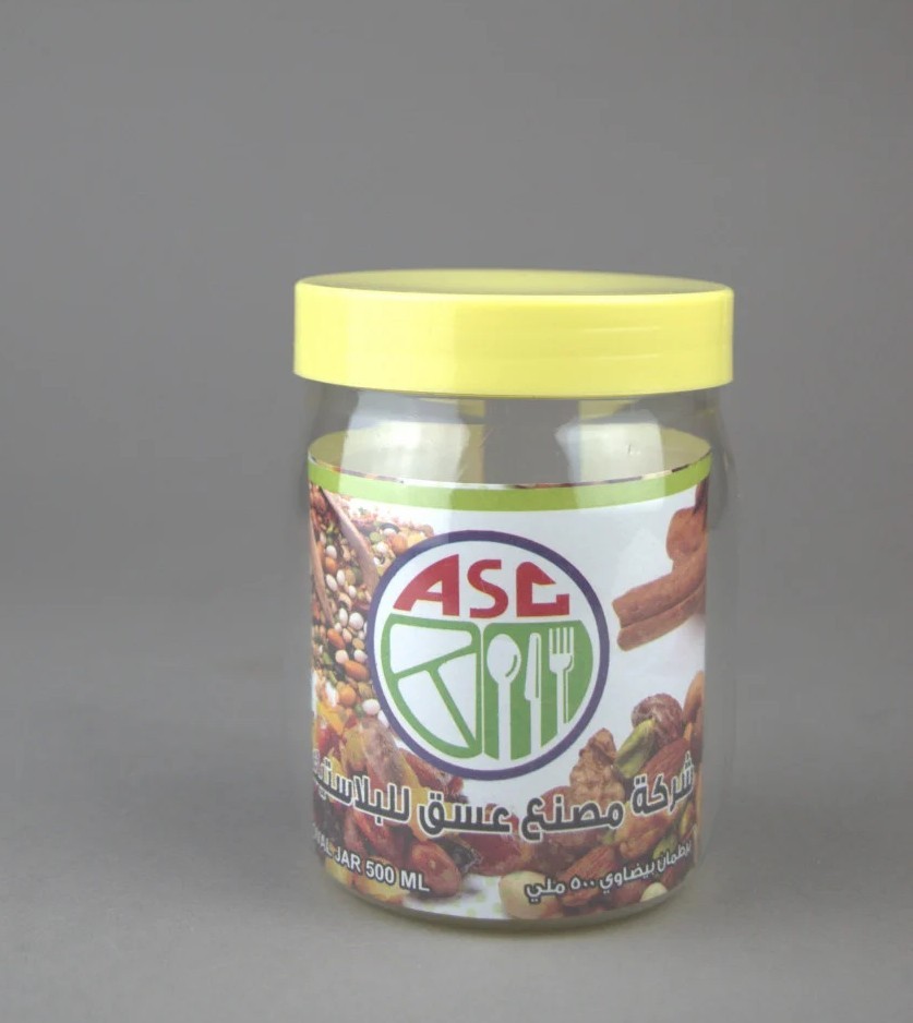 برطمان بيضاوي بلاستيك شفاف عسق بالغطاء الأصفر 500 * 70 مل شدة 12 حبة