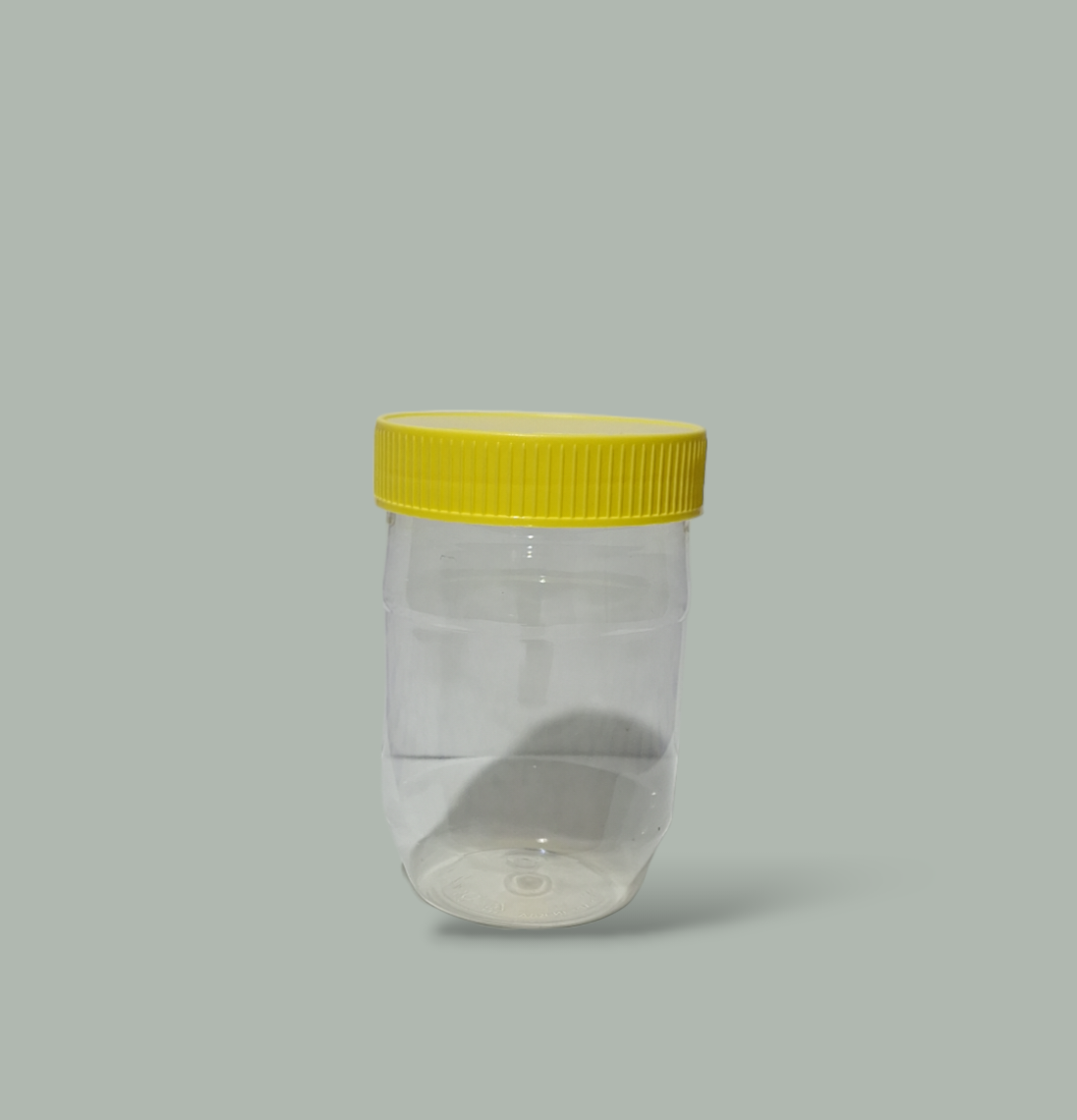 برطمان دائري بلاستيك شفاف عسق بالغطاء الأصفر 300 مل شدة 12 حبة