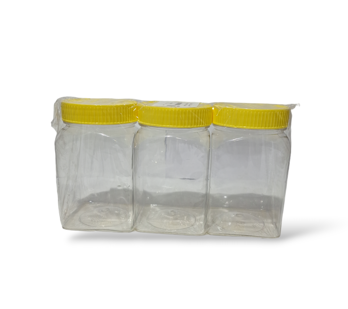 برطمان مربع بلاستيك شفاف عسق بالغطاء الأصفر 500 مل شدة 3 حبة