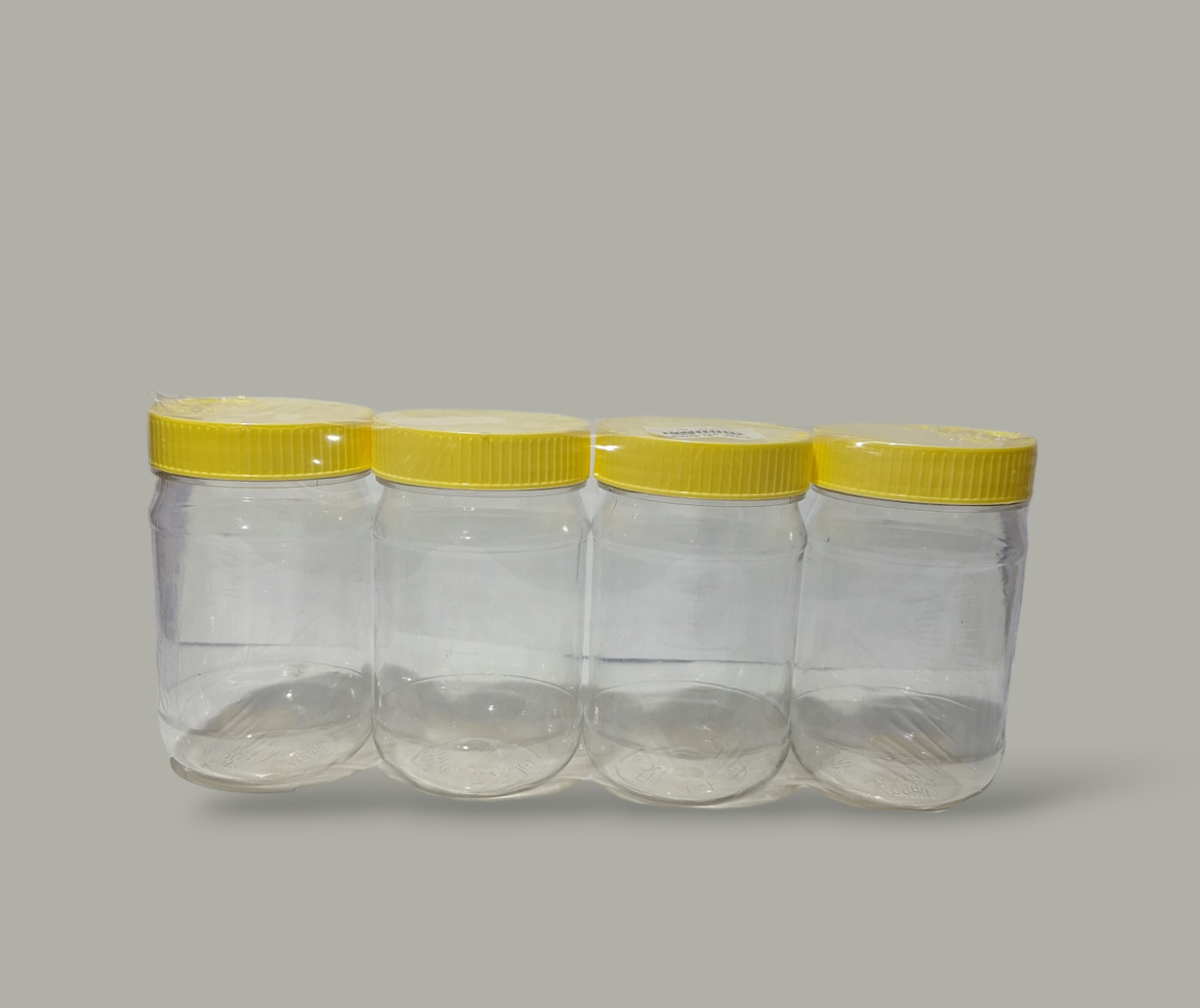 برطمان دائري بلاستيك شفاف عسق بالغطاء الأصفر 400 مل شدة 4 حبة