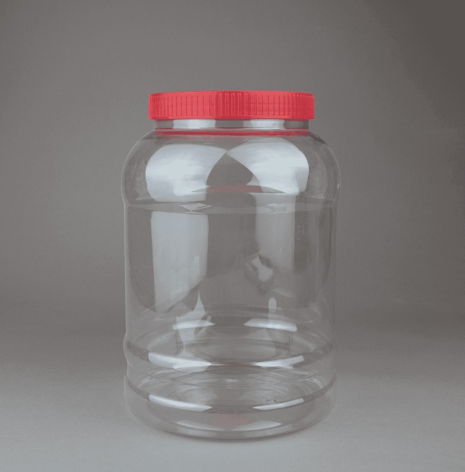 برطمان دائري بلاستيك شفاف عسق بالغطاء الأحمر 4 لتر * 120 مل بالحبة