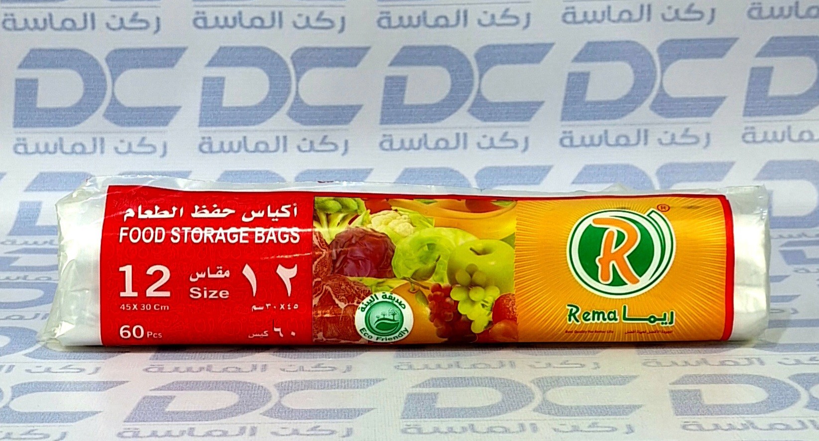 أكياس حفظ طعام ريما مقاس 12 الكيس فيه 60 حبة ( 45 * 30 سم )