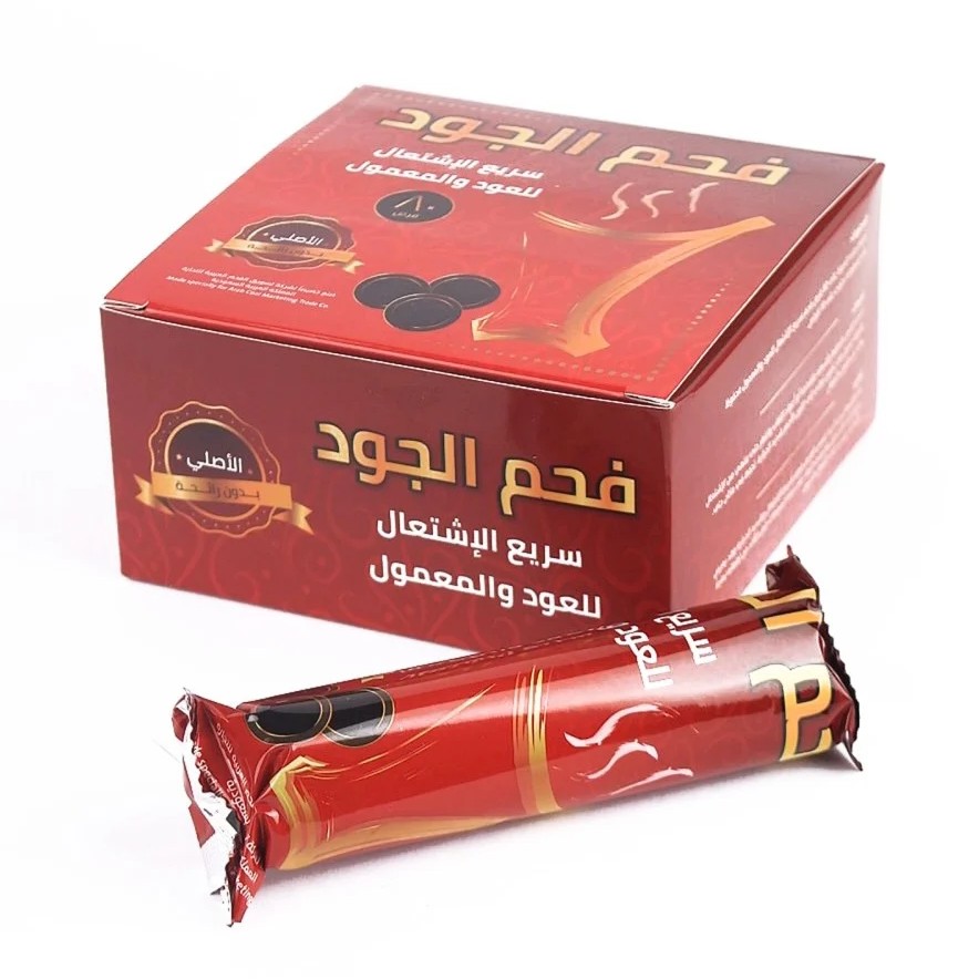 فحم يتميز بأنه: 1- عديم الرائحة. 2- بدون دخان. 3- سريع الاشتعال. 4- سعر تنافسي. 5- يشتغل بالقداحة بدلًا من الموقد. 6- يشتعل القرص ويصبح جاهز للإستخدام في غضون ثواني. 7- يحتوي على 80 قرص دائري حجم عادي ذو قطر 3.3 سم