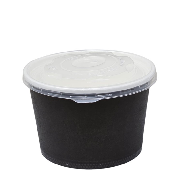 زبدية ورق أسود دائرية بالغطاء لحفظ وتعبئة الطعام والمأكولات الطازجة والشوربة بأنواعها , للاستخدام بالمطاعم والمنازل اثناء الخروج في العطلات الأسبوعية واوقات الراحة وأيضا استخدماها في العمل مثل الانش بوكس وقت الغداء
