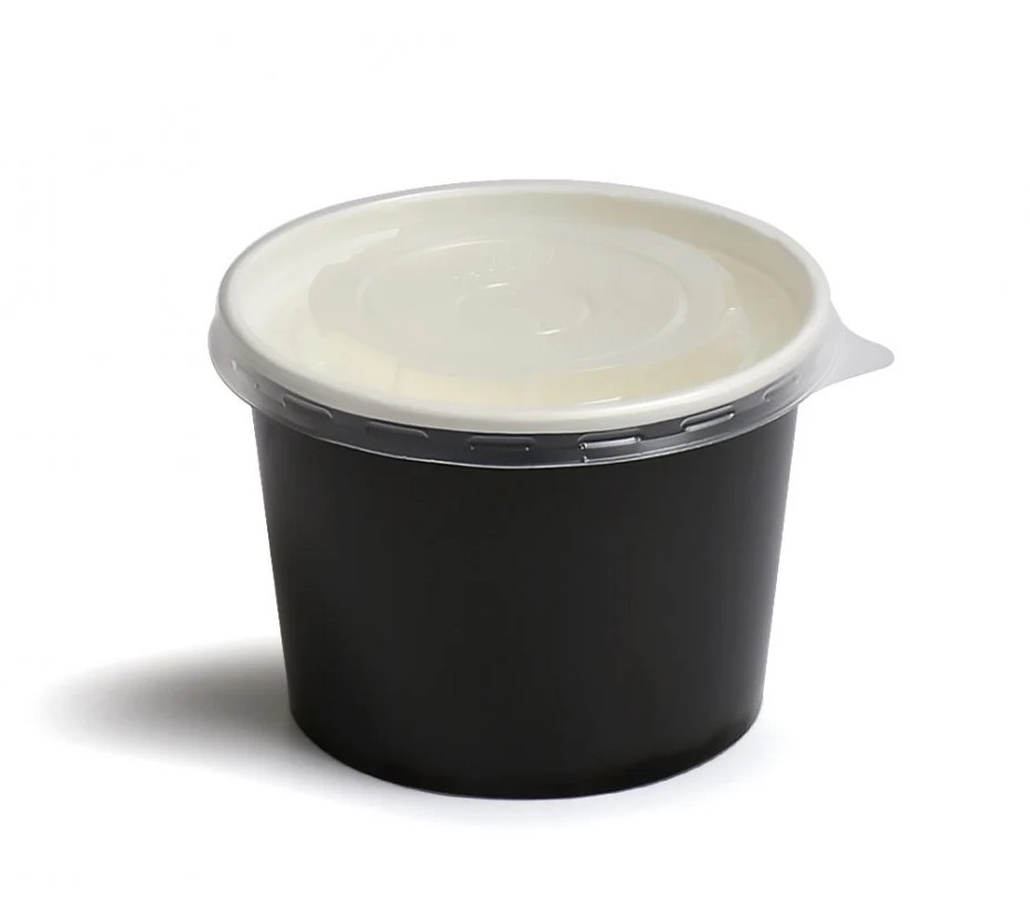 زبدية ورق أسود دائرية بالغطاء لحفظ وتعبئة الطعام والمأكولات الطازجة والشوربة بأنواعها , للاستخدام بالمطاعم والمنازل اثناء الخروج في العطلات الأسبوعية واوقات الراحة وأيضا استخدماها في العمل مثل الانش بوكس وقت الغداء
