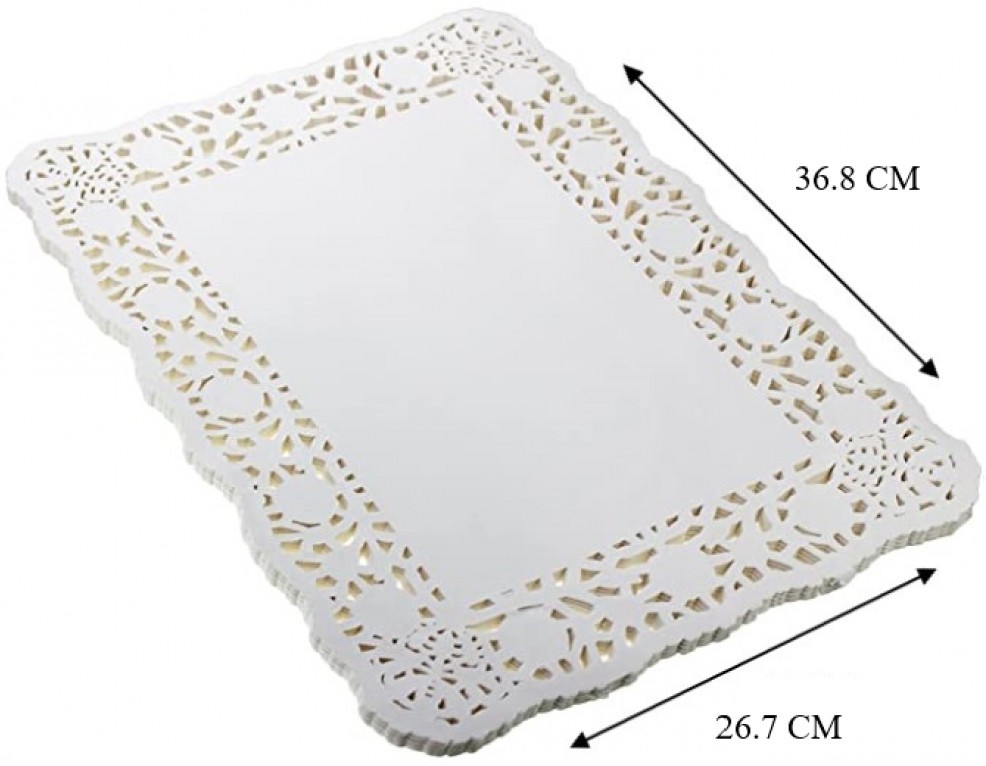 ورق دنتيل يأتي بتصميم مستطيل مع نقوش جانبية تضيف لمسة كلاسيكية ورقيقة على كل شيء، من الطاولات إلى الهدايا. مثالي للاستخدام في الحفلات، المناسبات العائلية، وأعياد الميلاد. بالإضافة إلى ذلك، يمكن استخدامه كديكور أنيق عند تقديم الحلويات والمخبوزات. مصنوع من ورق مقوى عالي الجودة، ليضمن لك المتانة مع الاستخدام المتكرر.