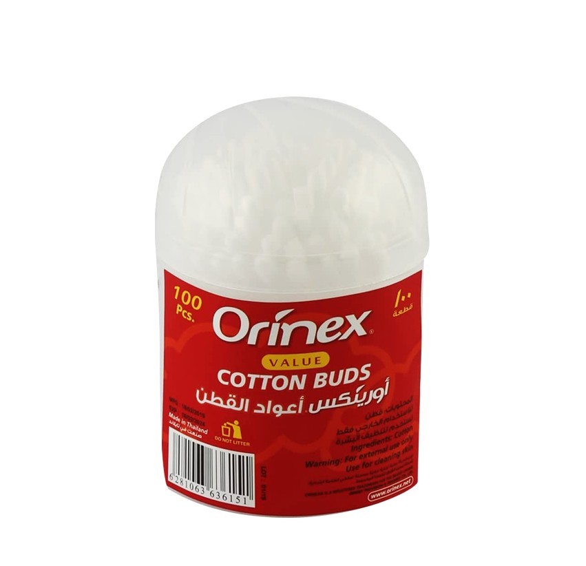 اعواد اذن قطنية من أورينكس 100عود يمكن استخدام الأعواد ذات الرأس القطني المزدوج في العناية بنظافة الاذن تصميم يزيل الأوساخ من الأنف والعين والسُرة هيكل مصنوع من مادة عضوية عالية الجودة ناعمة وماصة تحافظ العلبة الملائمة على نظافة عيدان الأذن وحمايتها من الرطوبة