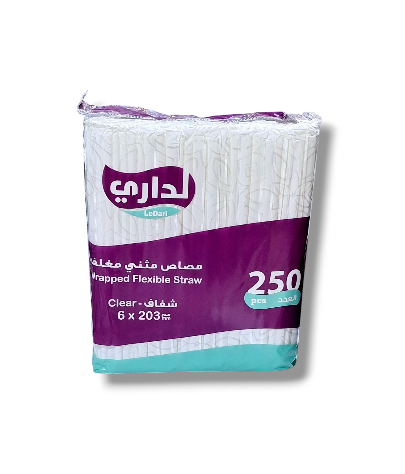 مصاص عصير مثني شفاف مغلف لداري عدد 250 حبة ( 6 * 203 مم )