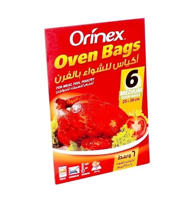 أكياس الفرن الحرارية اورينكس للشواء حجم متوسط ( 25 * 38 سم ) 6 حبة