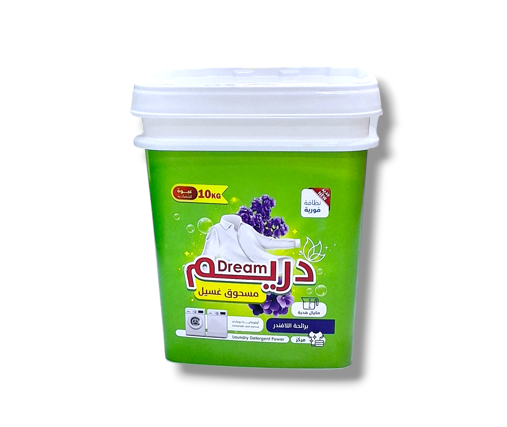 دريم مسحوق غسيل الملابس أنصع نظافة بمكيال واحد. ينظف الملابس لتصبح كالجديدة من غسلة واحدة. يحافظ على انتعاش ملابسك بعد غسلها. يحتوي على معززات للعطر توفر انتعاشاً يدوم أياماً على الملابس في الخزانة. إزالة فائقة للبقع في غسلة واحدة. السعة :10 كيلو. للغسالات (العادي - اوتوماتيك) وعليه ضمان ذهبي