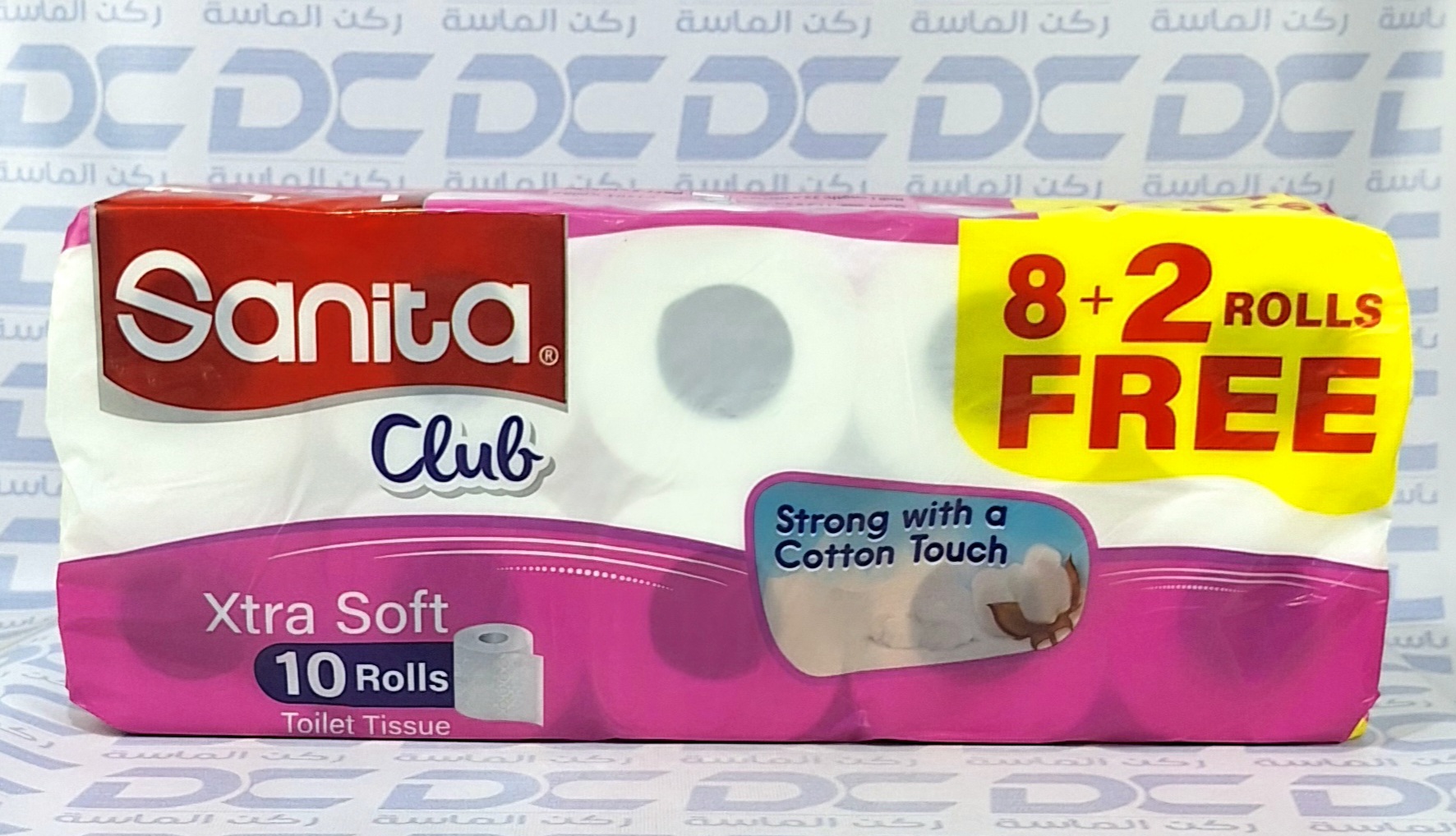 ورق حمام سانيتا كلوب نعومة اكثر رول 8 + 2 مجانا 200 ورقة مزدوجة قوي بلمسة القطن