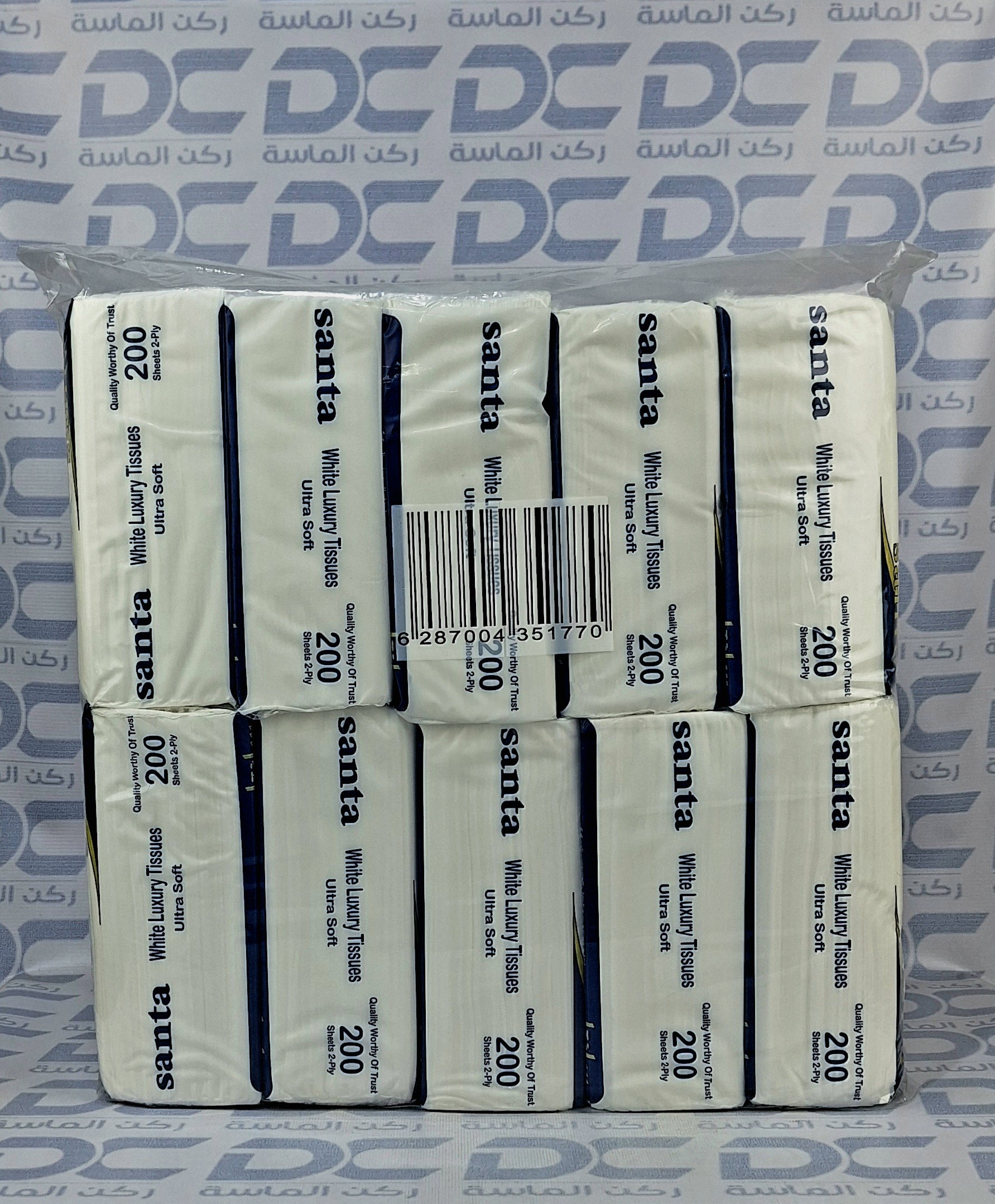 مناديل وجه ناعمة سانتا 200 منديل مزدوج * 10 عبوات بيضاء وقوية ومتعددة الاستعمالات