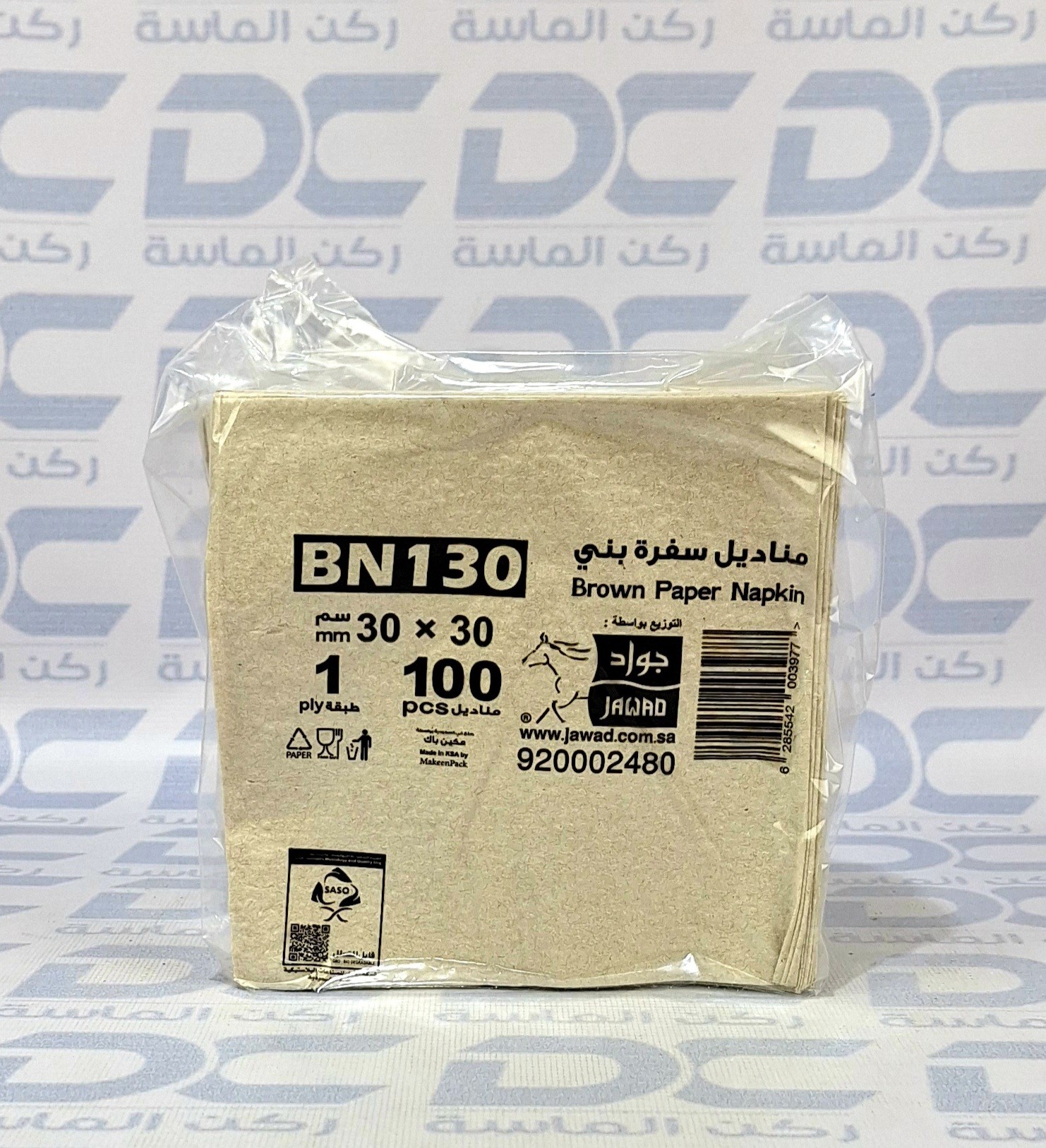 مناديل سفرة بني جواد 30 * 30 سم * 100 منديل مفرد متينة وللعديد من الاستعمالات