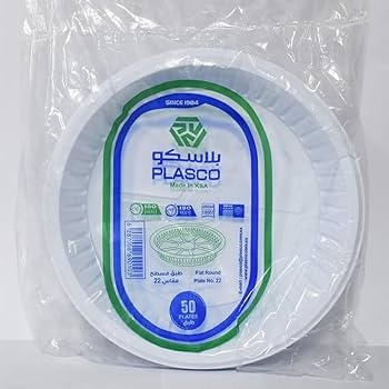 صحن بلاستيك دائري أبيض بلاسكو رقم 22 مقسم شدة 50 حبة