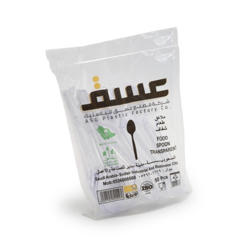 ملاعق بلاستيك شفاف كبيرة عسق شدة بها 50 حبة تستخدم في العديد من الاماكن