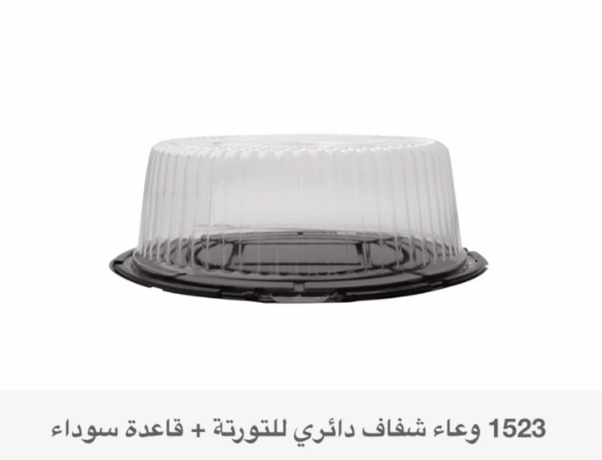 وعاء تورتة دائري أسود مع الغطاء الشفاف رقم 1523يستخدم لحفظ وعرض التورتات حجم 32/6 سم