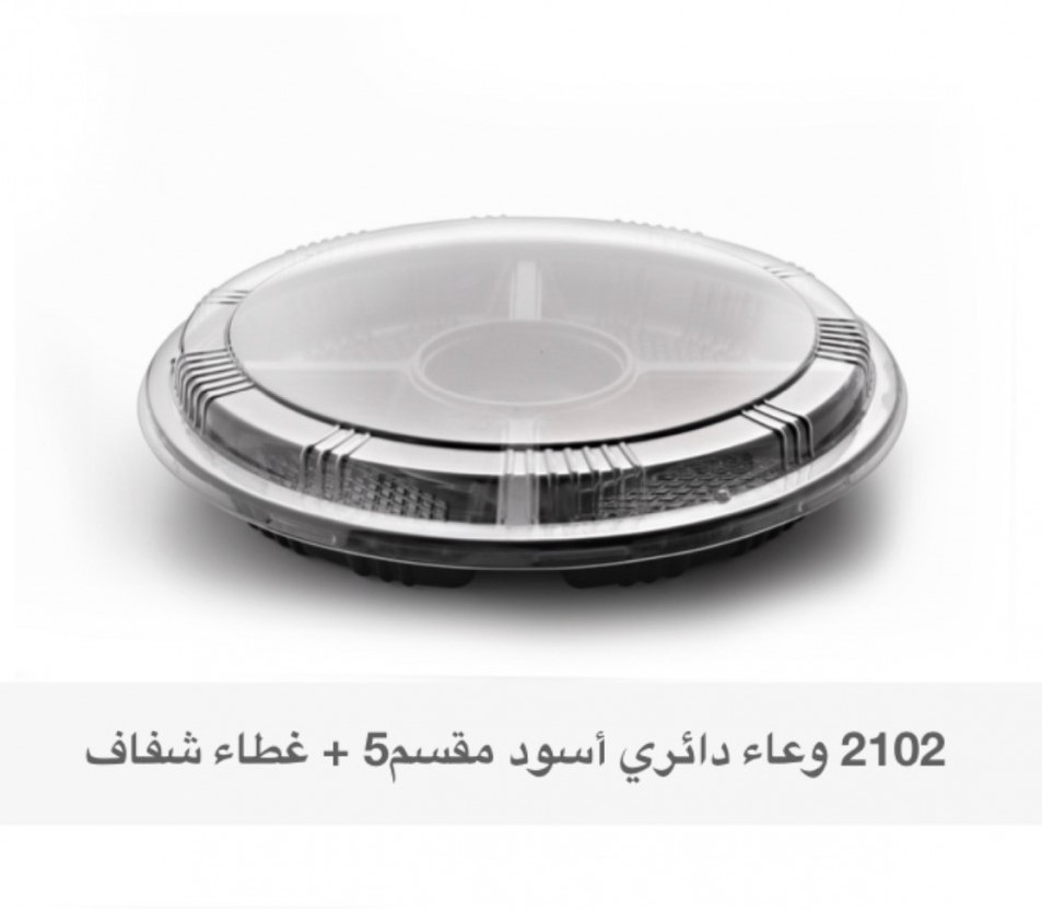 وعاء دائري أسود مقسم 5 مع الغطاء الشفاف جواد رقم 2102 شدة 25 مقاس 32/6 سم