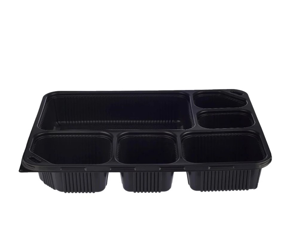 وعاء ميكروويف أسود مع الغطاء الشفاف جاسكو مقسم 6 بالحبة مقاس 291*218*45 ملم