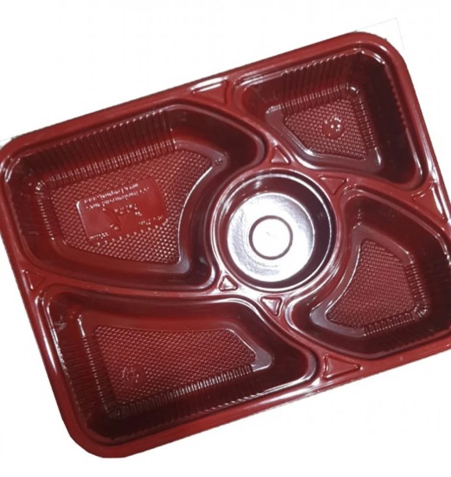 وعاء ميكروويف بلاستيك نبيتي مقسم 5 مع الغطاء الشفاف مقاس 265 × 200 × 38مم للحبة