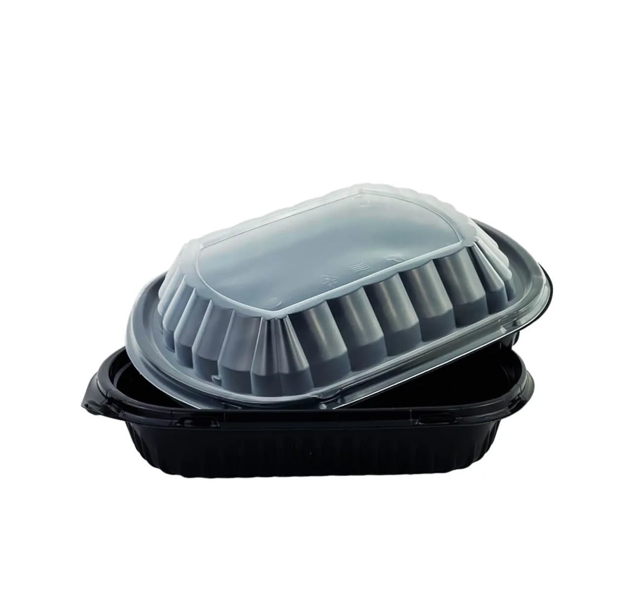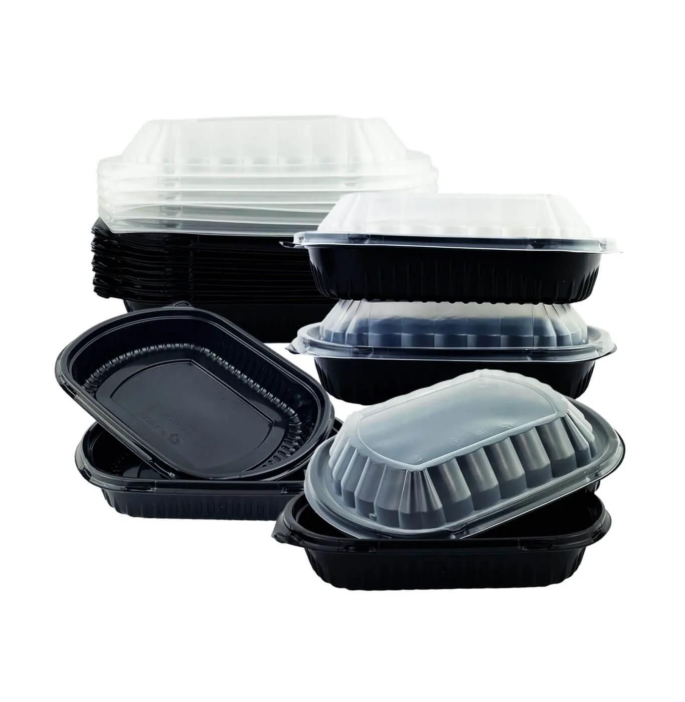 وعاء ميكروويف أسود مع الغطاء الشفاف جاسكو 8 أونص شدة 50 حبة لتعبئة وتخزين الأطعمة