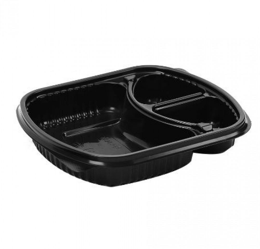 وعاء ميكروويف أسود مع الغطاء الشفاف مقسم 3 بلاسكو 24 أونز شدة 25 حبة