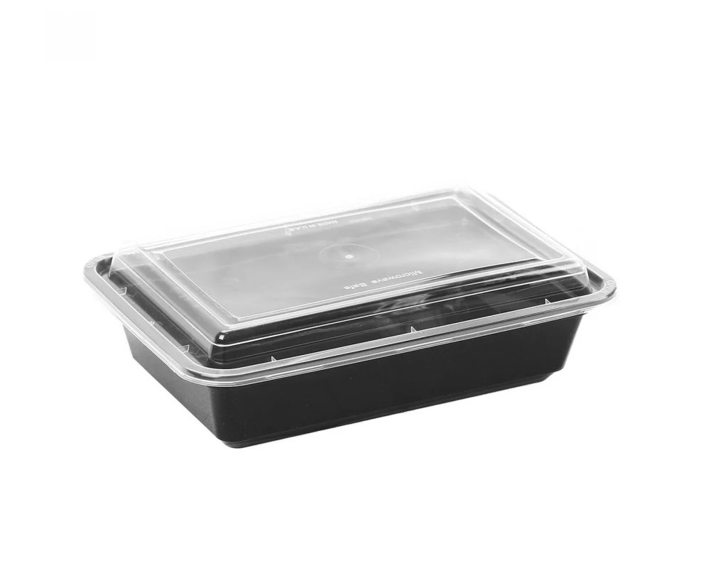 وعاء ميكروويف مستطيل أسود مع الغطاء الشفاف أبو سهم 28 أونص شدة 50 حبة